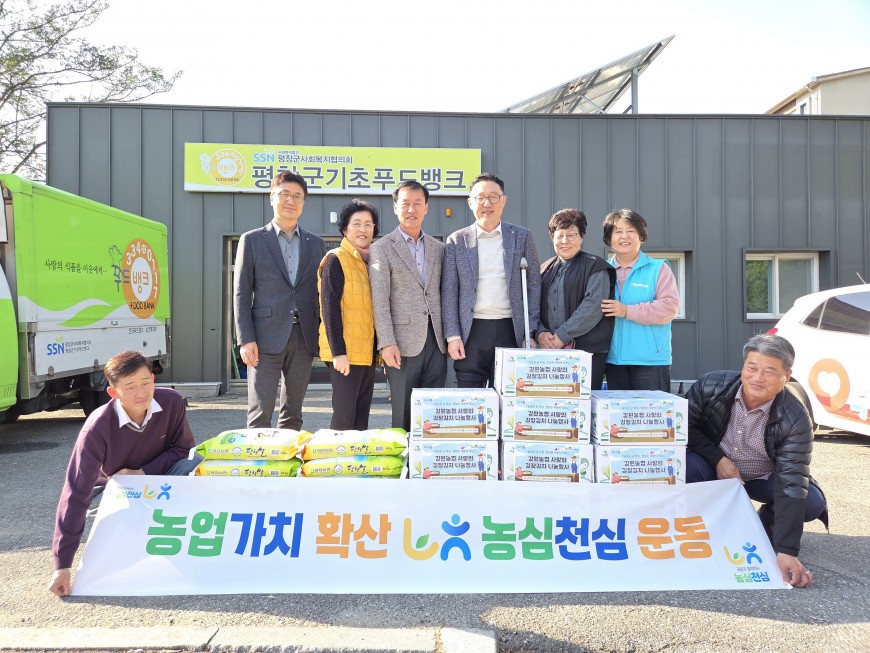 농협평창군지부(지부장:김태윤), (사)농가주부모임 평창군연합회(회장:윤복선), (사)고향주부모임 평창군연합회(회장:김경자)는 6일 김장김치와 평창쌀 나눔행사를 진행했다. 이날 평창 농가·고향 주부모임 회원들이 직접 담근 김장김치 100